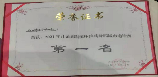 經(jīng)過(guò)一番激烈角逐后,江油市乒乓球協(xié)會(huì)取得第一名的好成績(jī)。