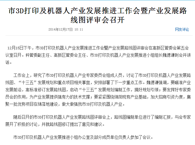 市3D打印及機(jī)器人產(chǎn)業(yè)發(fā)展推進(jìn)工作會(huì)暨產(chǎn)業(yè)發(fā)展路線圖評(píng)審會(huì)召開(kāi)