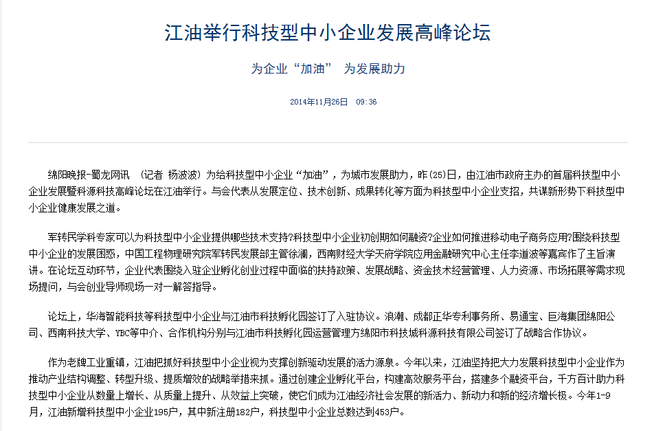 江油舉行科技型中小企業(yè)發(fā)展高峰論壇