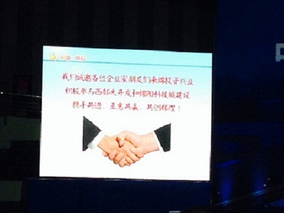 羅強(qiáng)在致辭中代表市委、市政府,向蒞臨會(huì)議的領(lǐng)導(dǎo)和嘉賓表示歡迎,向大家長期以來對(duì)綿陽發(fā)展的關(guān)注支持表示感謝,重點(diǎn)推介了綿陽的政策環(huán)境、科技創(chuàng)新、產(chǎn)業(yè)發(fā)展、區(qū)位條件和人居環(huán)境。他說,作為以科技實(shí)力著稱的國家科技城,綿陽未來發(fā)展有豐富的科技資源,有良好的產(chǎn)業(yè)基礎(chǔ),有優(yōu)越的政策環(huán)境,有便捷的生產(chǎn)生活條件,發(fā)展?jié)摿薮蟆⑶熬懊篮?,投資綿陽商機(jī)無限、正當(dāng)其時(shí)。希望社會(huì)各界繼續(xù)關(guān)心支持綿陽、宣傳推介綿陽。希望更多企業(yè)來綿投資發(fā)展,共同參與科技城建設(shè)的宏偉事業(yè),共同分享科技城建設(shè)的歷史機(jī)遇,與我市在發(fā)展“4+3”高端成長型產(chǎn)業(yè)、科技成果轉(zhuǎn)化、推動(dòng)創(chuàng)新創(chuàng)業(yè)等方面加強(qiáng)合作。綿陽將以優(yōu)惠的政策支持、優(yōu)質(zhì)的政務(wù)服務(wù)、優(yōu)越的投資環(huán)境,與大家共同譜寫互利共贏的新篇章。
