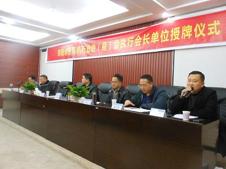 市委農(nóng)辦副主任何春華、市農(nóng)業(yè)局副局長(zhǎng)王均沛為綿陽(yáng)綠色有機(jī)行業(yè)協(xié)會(huì)(商會(huì))執(zhí)行會(huì)長(zhǎng)單位——科技城科源科技有限公司授牌。市工商聯(lián)秘書(shū)長(zhǎng)王華明、綿陽(yáng)綠色有機(jī)行業(yè)協(xié)會(huì)(商會(huì))發(fā)起人、名譽(yù)會(huì)長(zhǎng)蔣開(kāi)恩、綿陽(yáng)綠色有機(jī)行業(yè)協(xié)會(huì)(商會(huì))會(huì)長(zhǎng)、四川鐵騎力士集團(tuán)董事長(zhǎng)雷文勇,科源科技董事長(zhǎng)、綿陽(yáng)綠色有機(jī)行業(yè)協(xié)會(huì)(商會(huì))執(zhí)行會(huì)長(zhǎng)廖藝徽,綿陽(yáng)綠色有機(jī)行業(yè)協(xié)會(huì)(商會(huì))會(huì)員企業(yè)代表參加了會(huì)議。