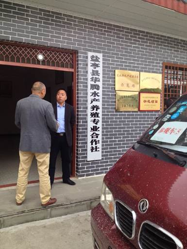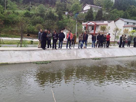 圖為考察團(tuán)在麻秧鄉(xiāng)華騰水產(chǎn)養(yǎng)殖專(zhuān)業(yè)合作社咨詢水產(chǎn)品種引進(jìn)事宜。