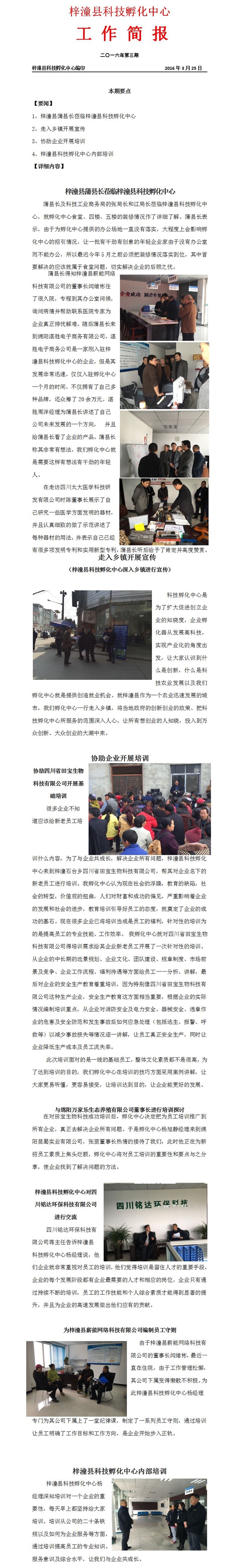 梓潼縣科技孵化中心2016年3月工作簡(jiǎn)報(bào)