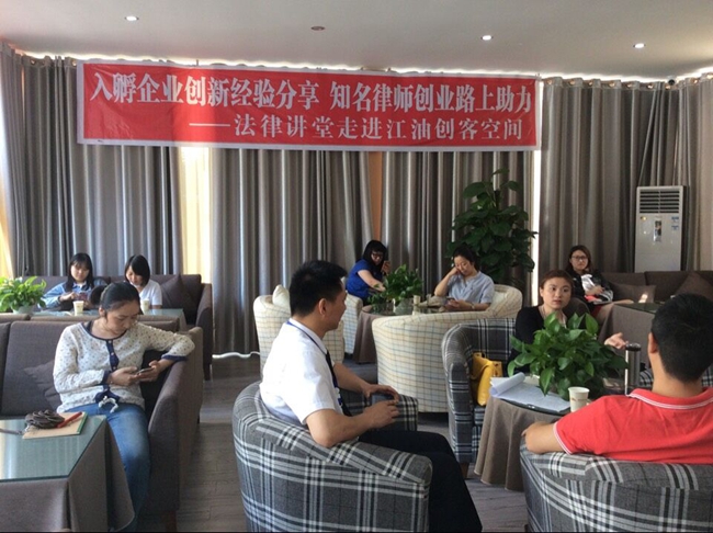 2016年5月18日,江油市創(chuàng)客空間攜太白律師事務(wù)所在創(chuàng)客咖啡舉行入孵企業(yè)法律知識講座及企業(yè)創(chuàng)新經(jīng)驗(yàn)的分享。參加本次講座的有綿陽悟空科技有限公司、江油弘云科技有限公司、綿陽煥然科技有限公司、江油歡喜小子網(wǎng)絡(luò)科技有限公司等十余家企業(yè)。