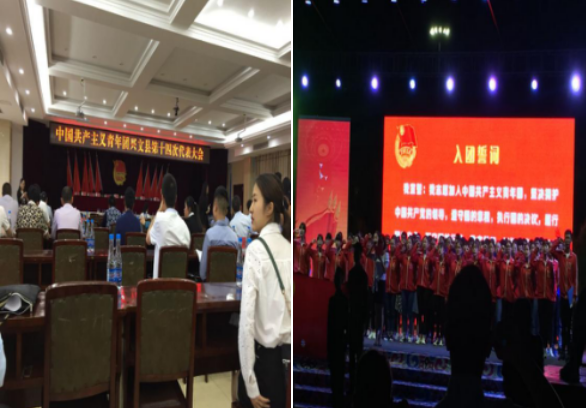 首先,進(jìn)行規(guī)范的入團(tuán)儀式,共青團(tuán)興文縣委李芳同志為新團(tuán)員代表佩戴團(tuán)徽、發(fā)放團(tuán)員證并帶領(lǐng)大家重溫了入團(tuán)誓言。