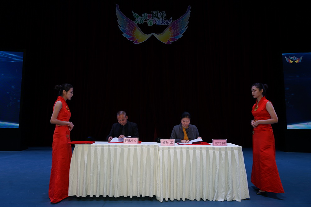 會上,四川省文化藝術(shù)學院與梓潼縣科技孵化中心簽訂校企戰(zhàn)略合作協(xié)議。