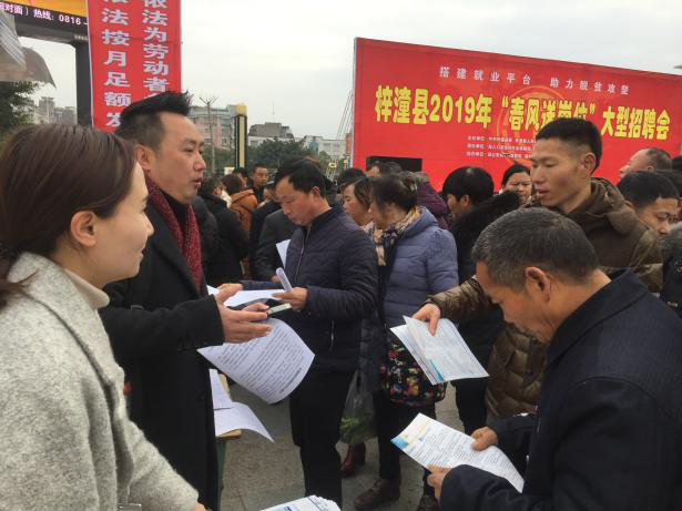 新年伊始,萬(wàn)象更新。2月12日,梓潼縣2019年春風(fēng)送崗位暨就業(yè)扶貧招聘會(huì)在縣人民廣場(chǎng)舉行,此次招聘會(huì)由中共梓潼縣委、梓潼縣人民政府主辦,縣人社局、縣扶貧開(kāi)發(fā)局、縣總工會(huì)、縣婦聯(lián)、縣殘聯(lián)、縣就業(yè)局、縣科工局等單位聯(lián)合承辦,市總工會(huì)黨組成員、副主席田秀輝,縣人民政府副縣長(zhǎng)蒲遠(yuǎn)富出席啟動(dòng)儀式。